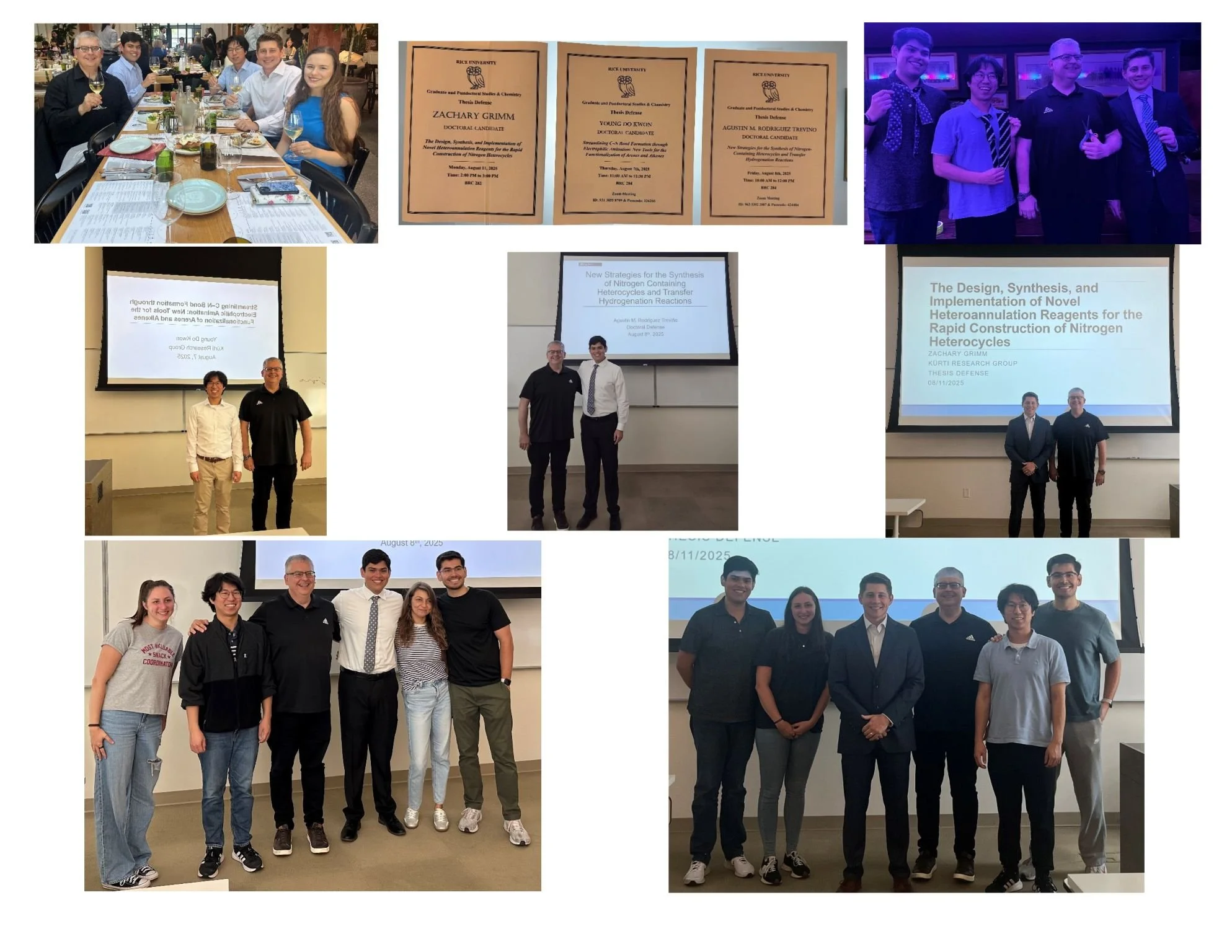 /This past week was a milestone for our group as Agustin M. Rodriguez Trevino (Agustin Mario Rodriguez Treviño), Young-Do Kwon (Young Do Kwon), and Zachary Grimm (Zachary Grimm) successfully defended their doctoral dissertations on three consecutive days — the largest graduating cohort in Kürti Lab history!