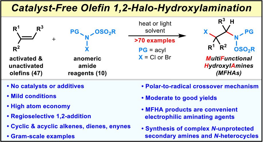 50. Young-Do Kwon, Daniel Joaquin, Michael T. Davenport, Jeff Olsen, Melany Carpio, Muhammed Yousufuddin, Daniel H. Ess, László Kürti* “Polar-to-Radical Crossover in Catalyst-Free Olefin Halo-Hydroxylamination: A Direct Route to Multifunctional Electrophilic Hydroxylamines”. JACS Au., 2026, Accepted. (DOI: 10.1021/jacsau.5c01471)